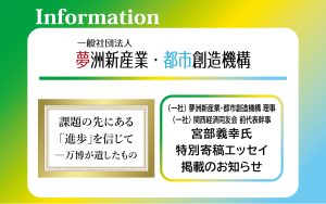 (一社) 夢洲新産業・都市創造機構 理事であり (一社) 関西経済同友会 特別幹事(前代表幹事) であられる宮部義幸氏による特別寄稿エッセイ「課題の先にある「進歩」を信じて―万博が遺したもの」を特別掲載いたします。宮部氏 […]