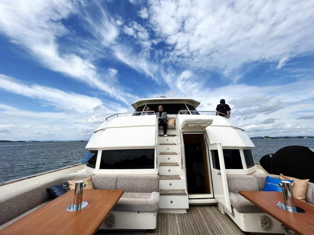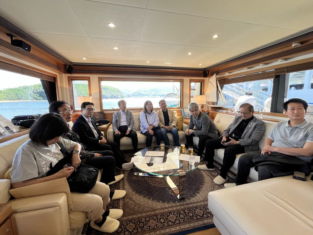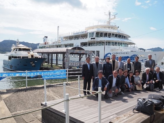 2025 年大阪・関西万博会場―瀬戸内国際芸術祭会場を、(*)スーパーヨットで大阪湾~瀬戸内海を結ぶ社会実証実験を9 月29~30 日に行いました。同実験で岡山、香川、兵庫、大阪の各県を巡って視察調査で得た知見を基にし、歴史、伝統、文化にあふれる瀬戸内海の多島美を世界にアピールするために、「世界のせとうち宣言」をまとめました。本企画を通じ、思いを同じくする関係者に対する羅針盤とし、瀬戸内の国際的な観光地位向上を目指し、後世へ継承してゆく機運の醸成を図りました。