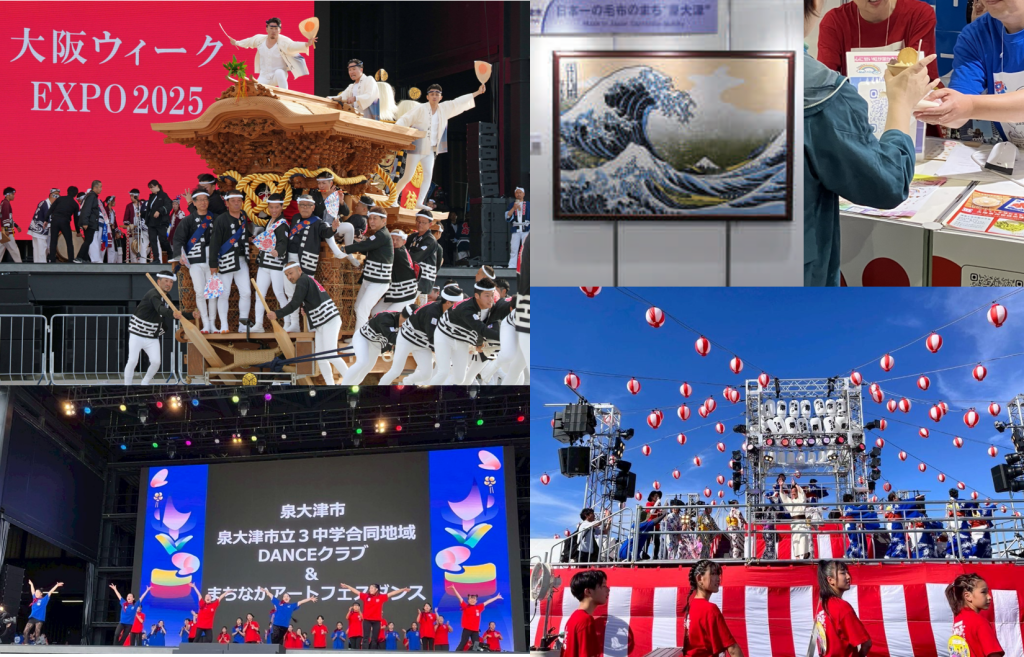 大阪府・大阪市が主催する「大阪ウィーク~春・夏・秋~」の市町村主催イベントとして、大阪・関西万博の2会場(大阪ヘルスケアパビリオンリボーンステージ、ギャラリーWEST)で開催。伝統・文化・地域資源を活かした「未来を切り拓くための挑戦」として、健康、食、エネルギー、アートに関する泉大津市の各種取組みを紹介し、泉大津がめざす未来社会を知り、体験いただくイベントを展開しました。