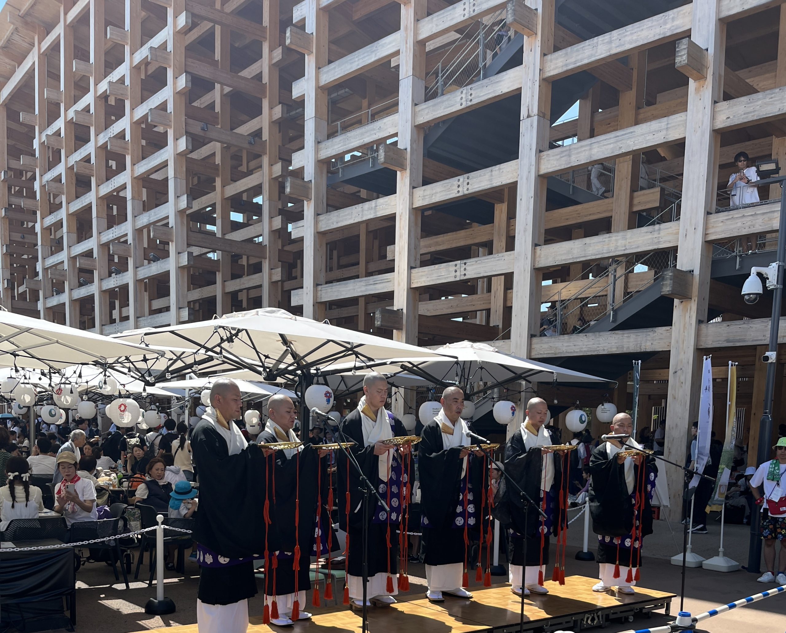高野町は、高野山ではしめ縄の代わりに作られてきた「宝来」切り体験、総本山金剛峯寺僧侶による声明公演、クラフトビールをはじめとした特産品の販売」を実施しました。たくさんの方がブースに来てくださり、高野町のPRを行うことができました。