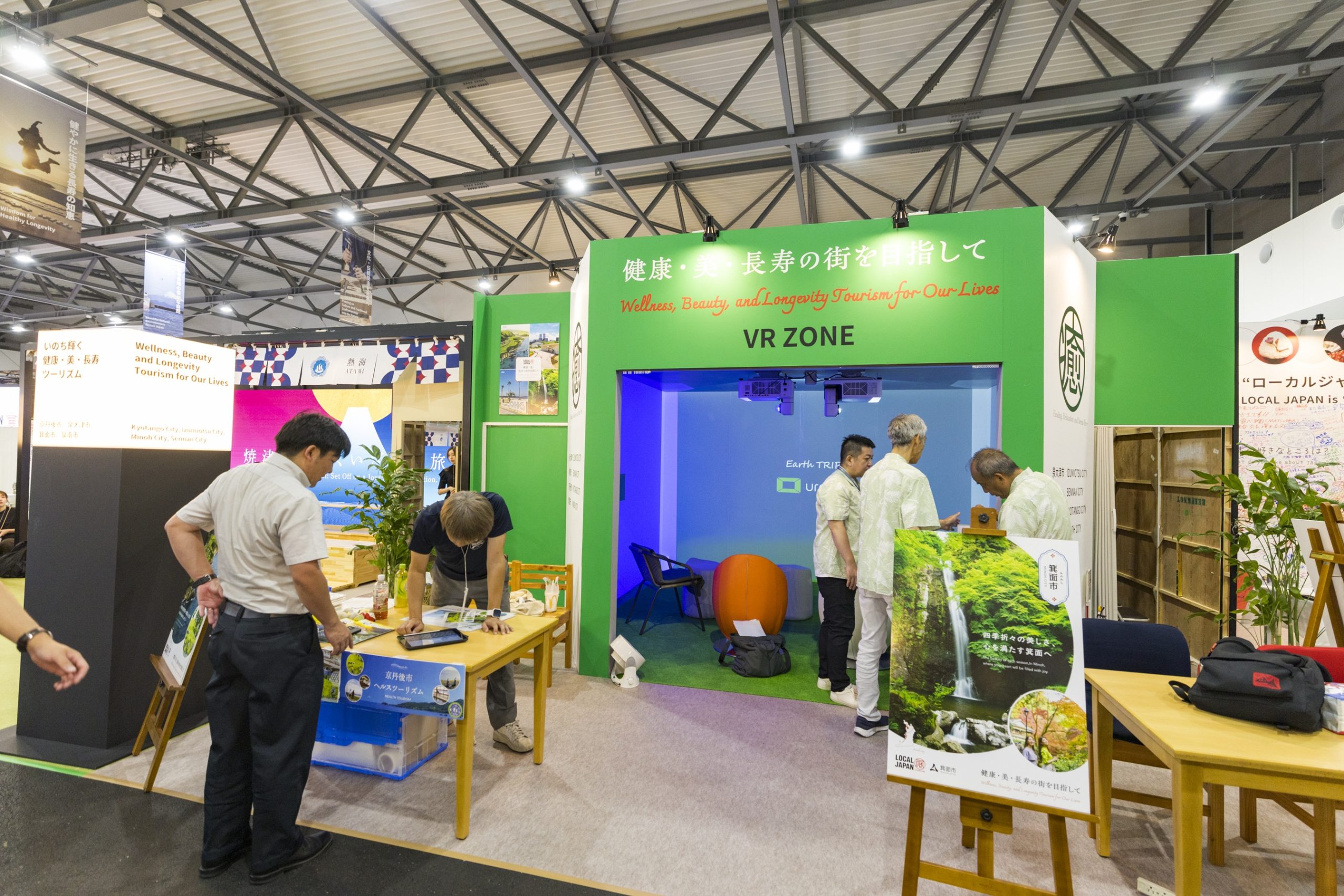 「いのち輝く 健康・美・長寿ツーリズム」と題し京丹後市・泉大津市・泉南市と合同で各市の癒しスポット等や市の紹介ブースを設置し、リラックスできるアロマオイルが香る空間で、VR 映像とハイレゾ音源を組み合わせた没入体験により広く本市の魅力発信を行いました。