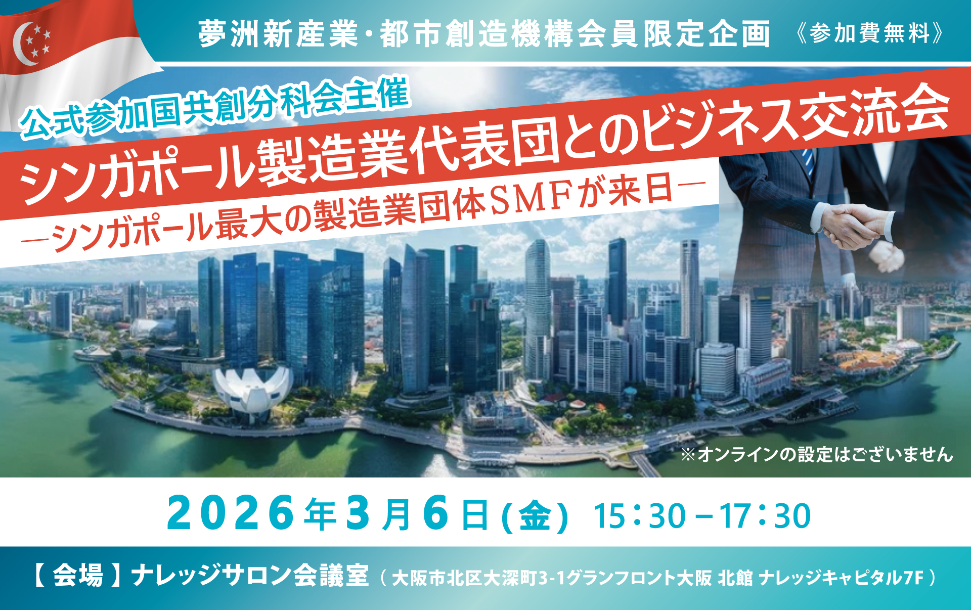 シンガポール最大級の製造業団体であるシンガポール製造業連盟(Singapore Manufacturing Federation:以下、SMF)の代表団来日を機会に、夢洲機構とのビジネス交流会を開催します。