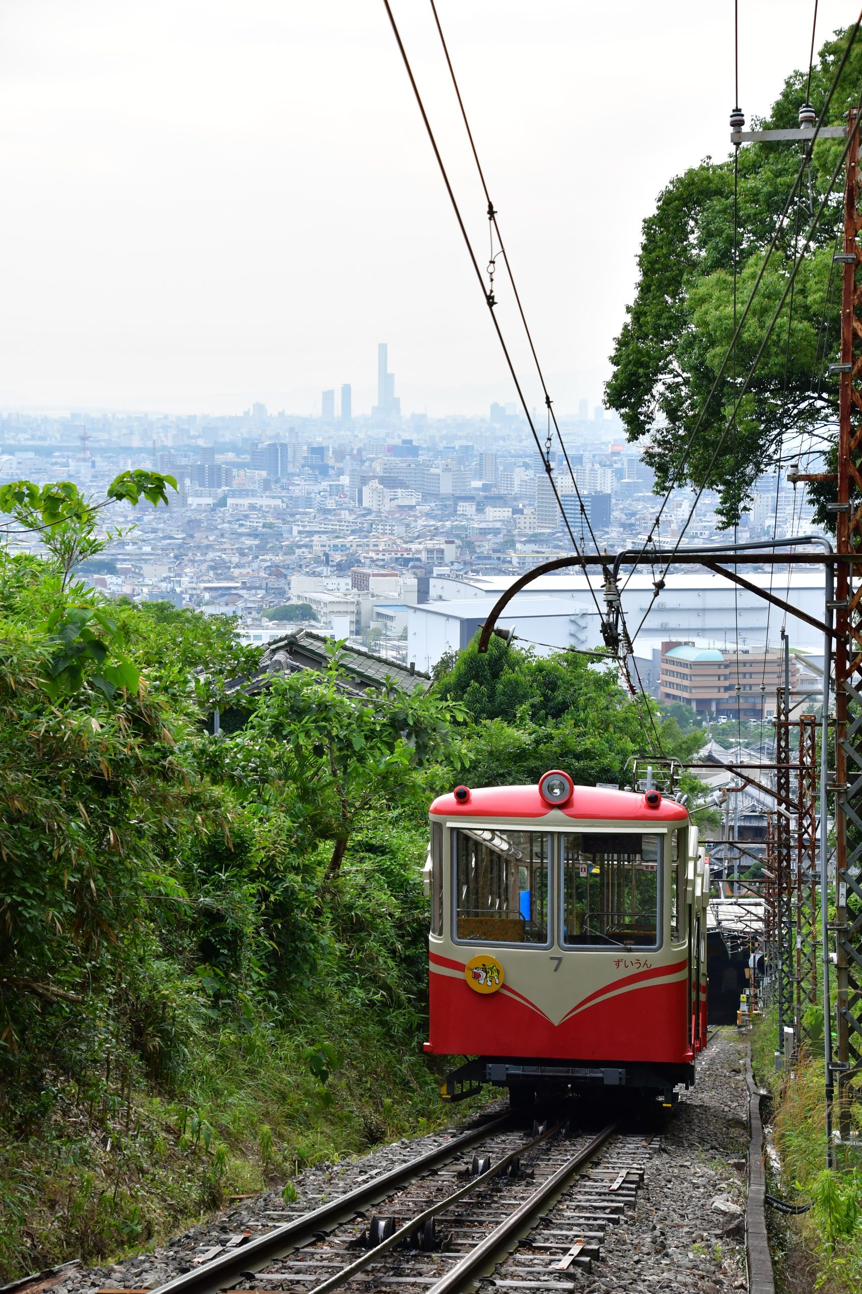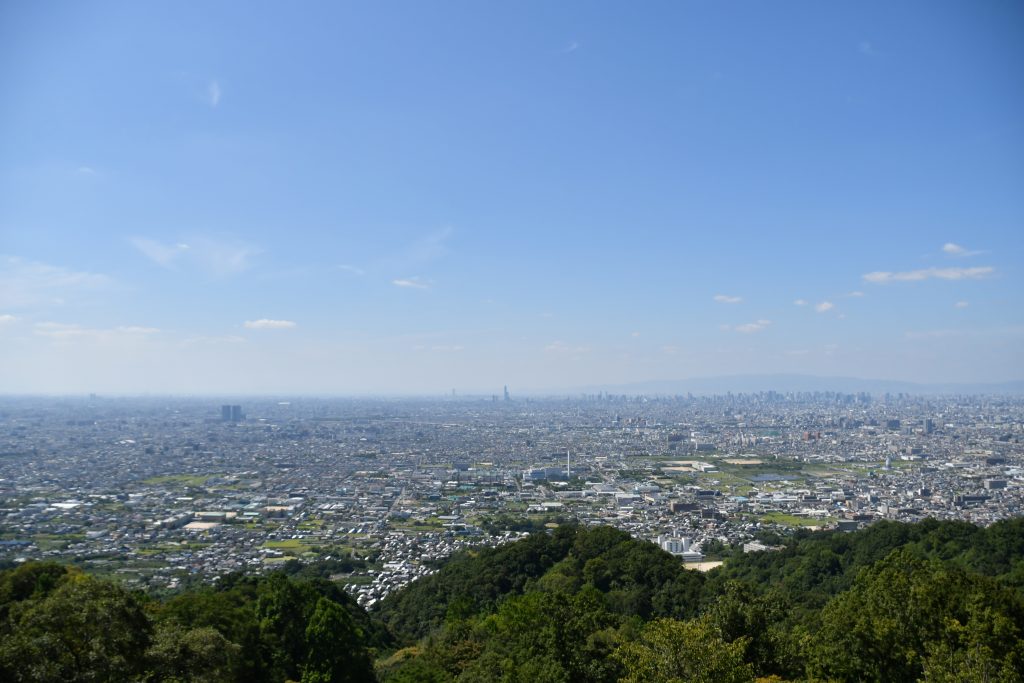 大阪府下で唯一のケーブルカーです。高安山へは信貴山口駅からケーブルで上がることができます。高安山駅の改札口を出てすぐ右に行き、少し先にある階段を上っていくと展望台があります。展望台にはイスも設置されていて、そこから大阪平野を一望することができます。