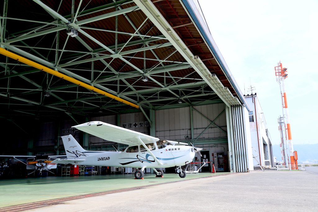 国内では数少ない2本の交差滑走路を持つ空港です。昭和初期に操縦士育成の民間学校として始まり、現在も操縦訓練のほか、航空写真撮影や遊覧飛行などに利用されています。災害発生時の援助基地としての役割も担っています。